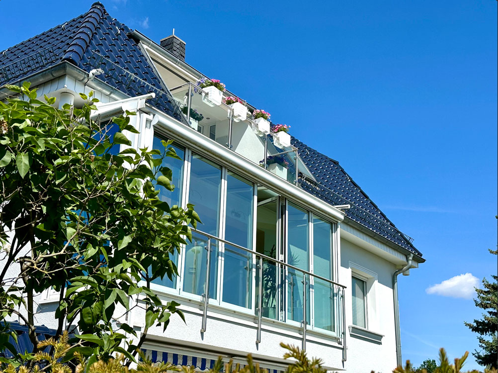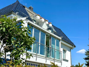 Das 1. Obergeschoss sowie das Dachgeschoss stehen bei Übergabe bezugsfrei zur Verfügung und eröffnen großzügige, lichtdurchflutete Wohnflächen mit gehobener Ausstattung. Die Fußbodenheizung sorgt in beiden Etagen für ein modernes, behagliches Wohnambiente. Ein großer Wintergarten bildet das Herzstück des Hauses und schafft eine einzigartige Verbindung von Wohnraum und Natur – ideal für jede Jahreszeit. Die großzügige Terrasse lädt zu entspannten Stunden im Freien ein und erweitert den Wohnraum auf angenehme Weise.